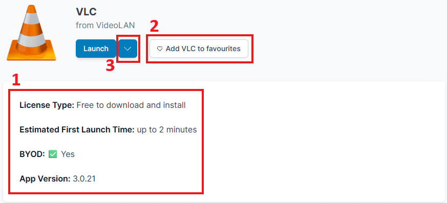 “Launch” usually means that the app will be delivered via Cloudpaging (as described above). Clicking on a Launch button will open the Cloudpaging Player and start the process of caching the app to make it available for you to use. This takes longer the first time you launch an app (refer to the first launch time estimate in the tile to predict how long). Launching the app again later on the same device is more like launching an app that’s installed locally and is generally very quick, depending on your computer and the size and complexity of the app.